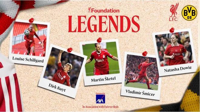 利物浦女足大使兼队史射手王道伊将与前队友希尔加德一同参赛,后者将首次代表利物浦传奇队出战,她们曾在2013年和2014年帮助利物浦女足连续赢得英女超冠军。