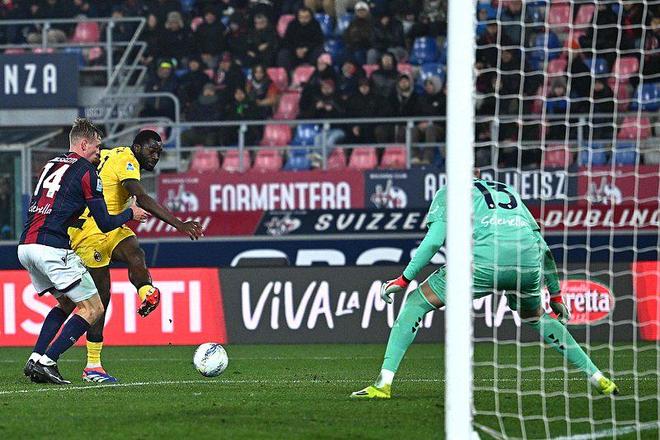 上半场第20分钟,恩昆库冲顶被门将扑出,拉比奥特得球回敲后奇克推射破门,AC米兰1-0博洛尼亚;第36分钟,AC米兰获得点球机会,恩昆库主罚命中,AC米兰2-0博洛尼亚。