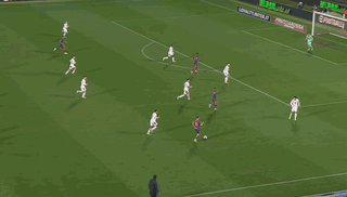 卡马特大量压上、盘带、持球制造威胁,而蓝黑军团首开纪录的进球,也恰是来自他在右路的助攻:他的传中找到博尼的头顶,让法国中锋轻松破门。